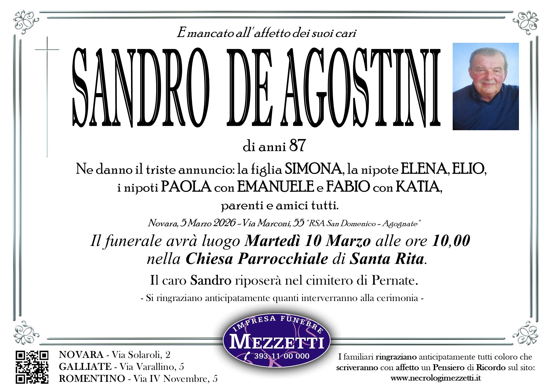 I familiari ringraziano anticipatamente tutti coloro che parteciperanno alla cerimonia funebre e tutti coloro che scriveranno con affetto un Pensiero di Ricordo.