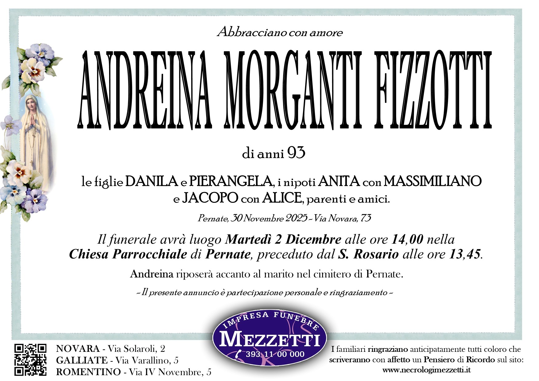 I familiari ringraziano anticipatamente tutti coloro che parteciperanno alla cerimonia funebre e tutti coloro che scriveranno con affetto un Pensiero di Ricordo.